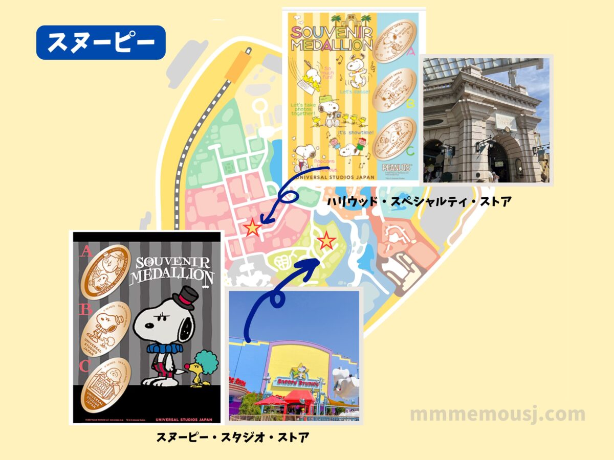 スヌーピー関連のメダリオンは、USJの入口付近のお店とユニバーサルワンダーランド内にあるスヌーピーのお店で販売があります。