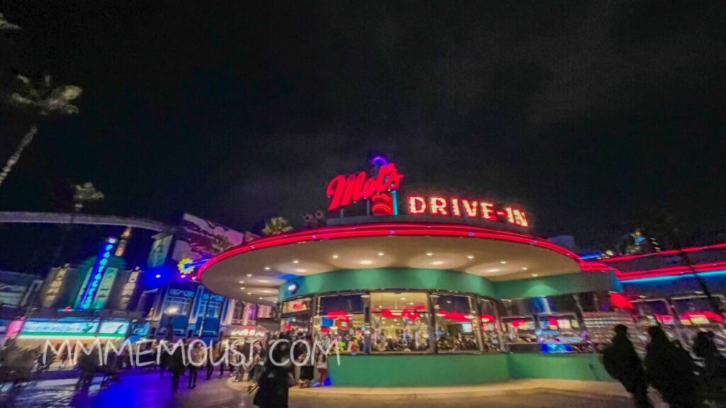 井口さんがハミクマのポップコーンをハミクマソールのグッズを身に着けて食べていた場所は、メルズドライブインの外の席と推測されます。
