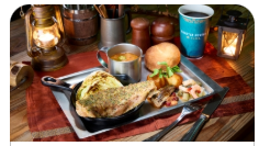 ![]() 公式サイト引用 | 焚き火料理 ポーク、ワイルドハーブ、シルドニンニク | 2800円 |