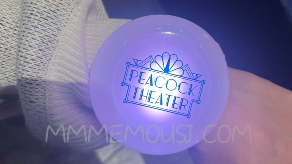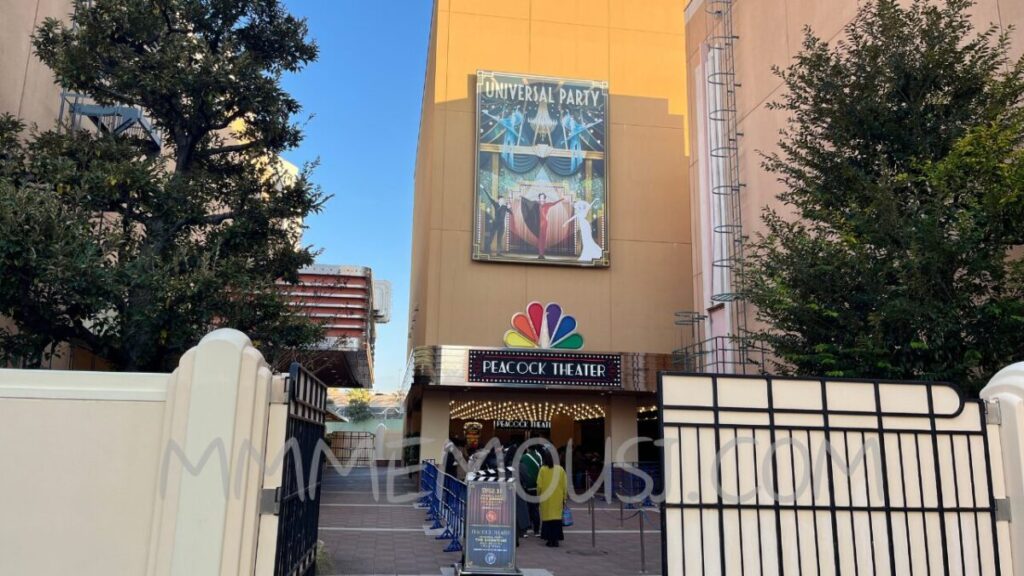 ピーコックシアターは、スペースファンタジーザライドの待ち列から見えるシアターです。