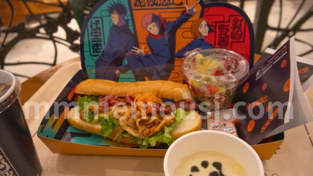 また、セットドリンクは後ほどレビューする「呪術高専のグレープフルーツ・レモネード(アイス/ホット)」への変更が可能です。変更した場合の追加料金は400円とのことでした。