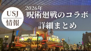 すべて【USJ】呪術廻戦はいつから?身長制限や年齢制限、場所、待ち時間、感想など詳細まとめ USJと呪術廻戦のコラボが開催されます。コラボ詳細呪術廻戦・ザ・リアル 4-D~廻る時計台~呪術廻戦 ストーリー・ライド ~呪霊列車~オリジナルレストランフード(ブランジェリー)オリジナルカートフード&グッズ呪術廻戦はいつから?身長制限や年... 2026.01.24すべて